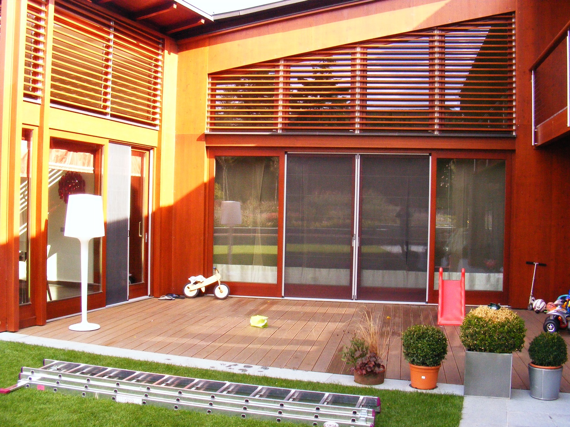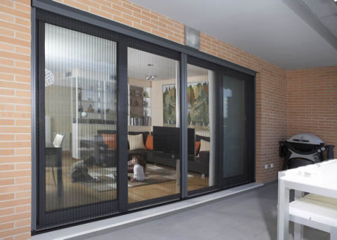 Az alumínium pliszé szúnyogháló modern megjelenésű, helytakarékos megoldás terasz- és erkélyajtókhoz.